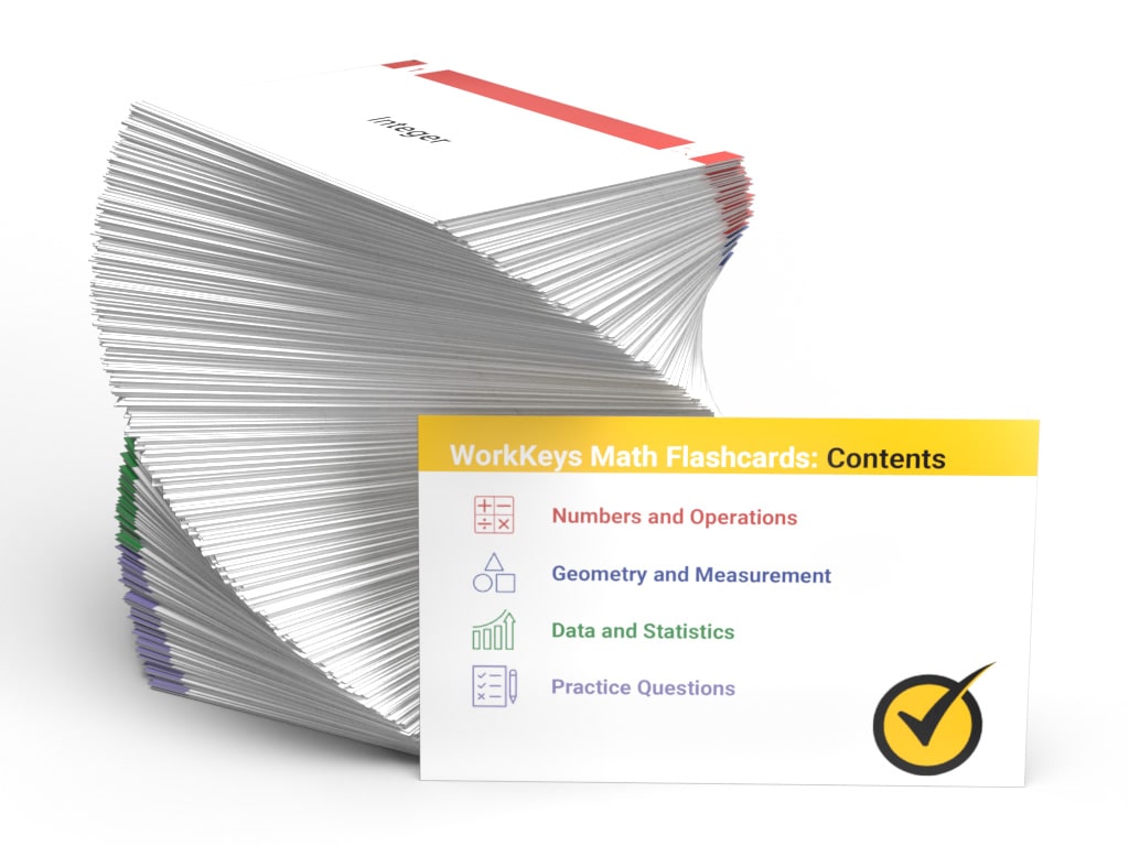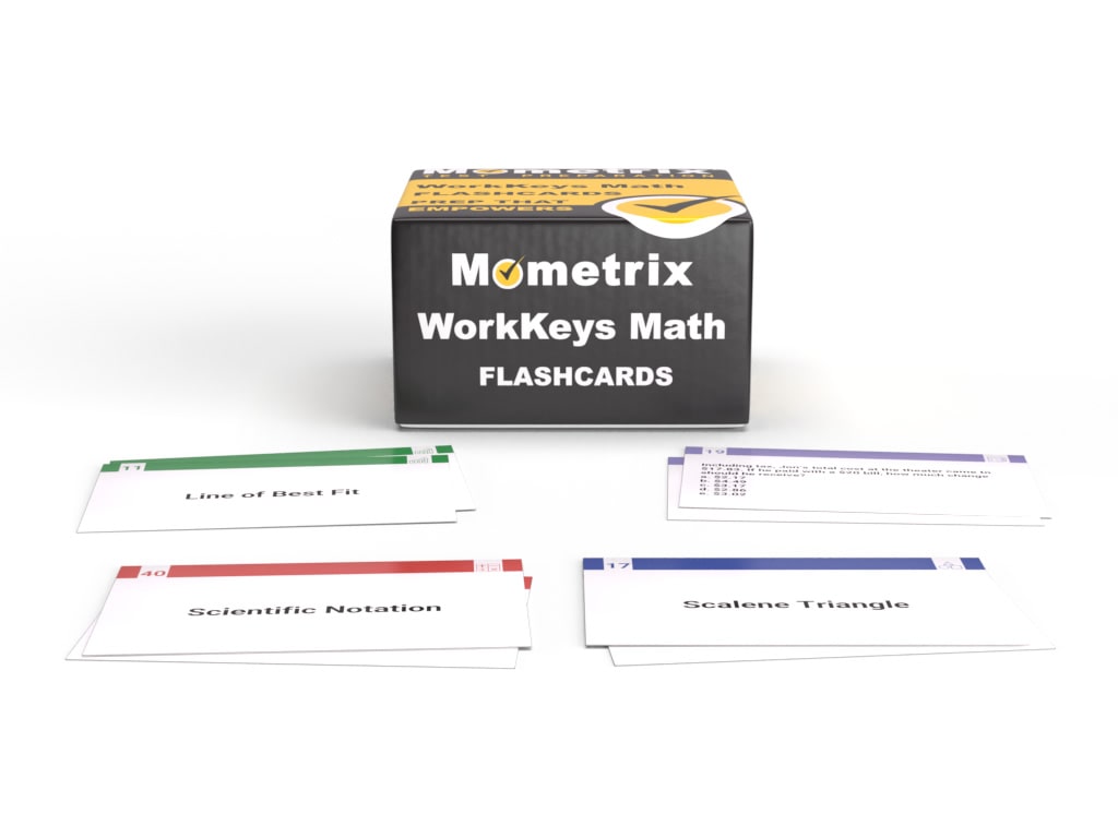 That's why we created the WorkKeys Math Study Cards: we have taken all of the possible topics and reduced them down to the hundreds of concepts you must know and provided an easy-to-use learning method to guarantee success on the WorkKeys Applied Math Assessment.